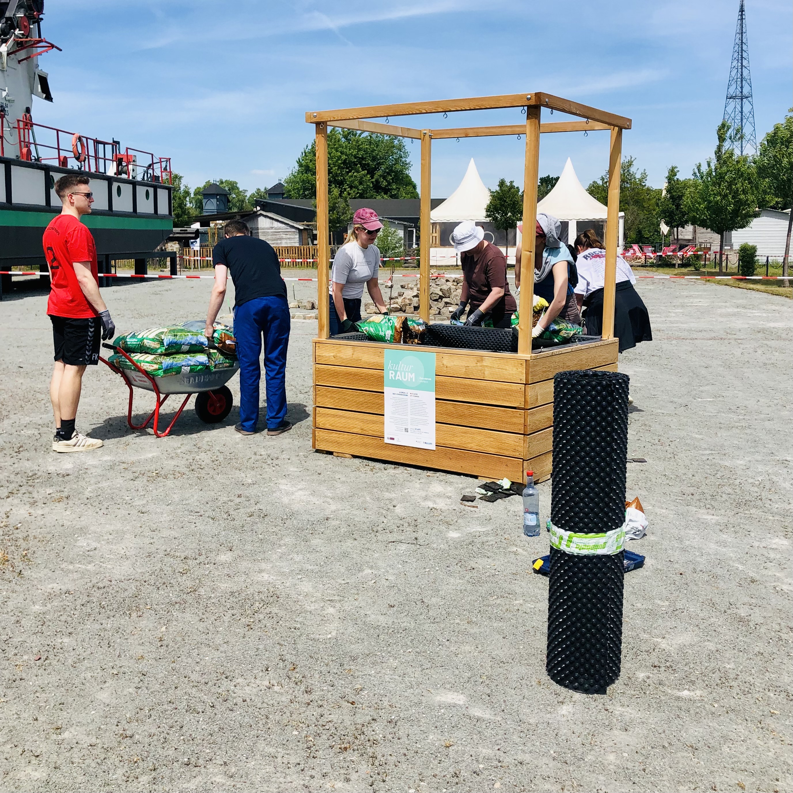 Einen besonderen Beitrag leisteten die Studierenden des Seminars Urban Gardening – Diskurs und Praxis städtischen Gartenbaus. Sie übernahmen sie die Befüllung und Bepflanzung der Beete und setzten sich setzten sich theoretisch mit Fragen nachhaltiger Stadtentwicklung auseinander und setzten ihre Erkenntnisse direkt vor Ort praktisch um. Unterstützt wurden sie dabei durch Partnern aus Wirtschaft, Gesellschaft und Kommune wie Café Treibgut, der GISE, dem Geschäftsstraßenmanagement Neustadt, der Gesellschaft der Freunde und Förderer der Universität Magdeburg GDFF und dem Projekt Studieren ab 50 der Universität Magdeburg.