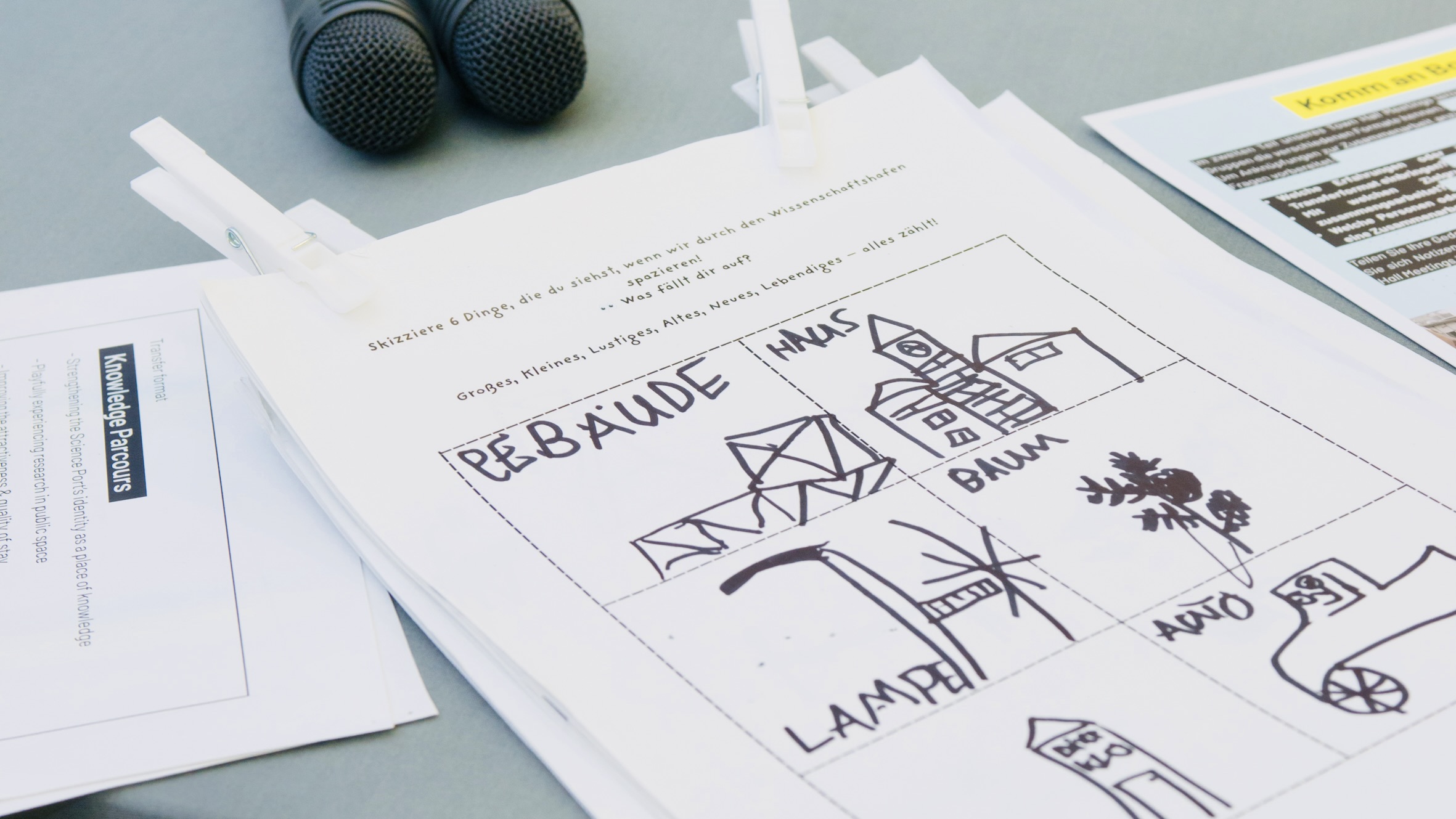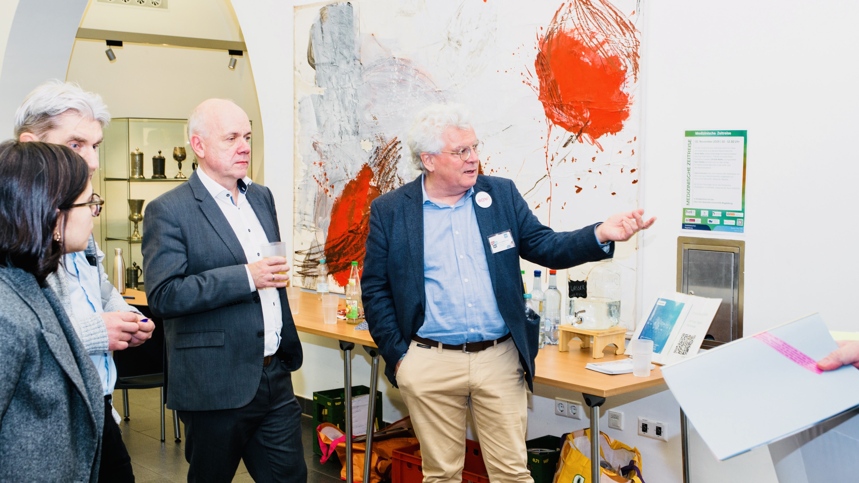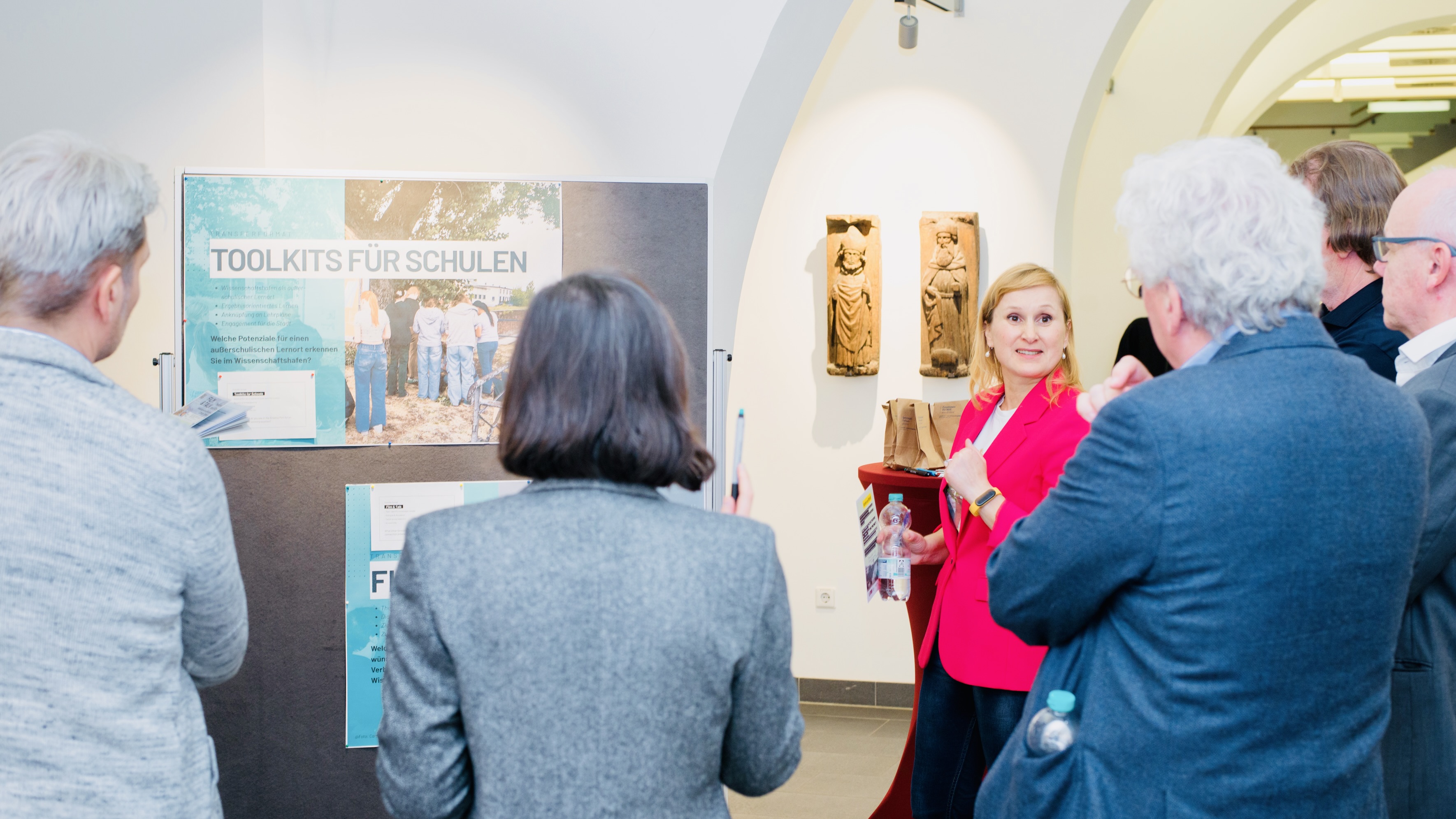 Danach konnten die Teilnehmer:innen Transferformate im direkten Austausch erleben. Beim Mini Walk & Talk führte ein Wissensparcours durch verschiedene Transferprojekte, die in der transSCAPE-Werkstatt vorgestellt wurden – von ko-kreativen Workshops über Tools für Schulen bis hin zu einer studentischen Agentur.