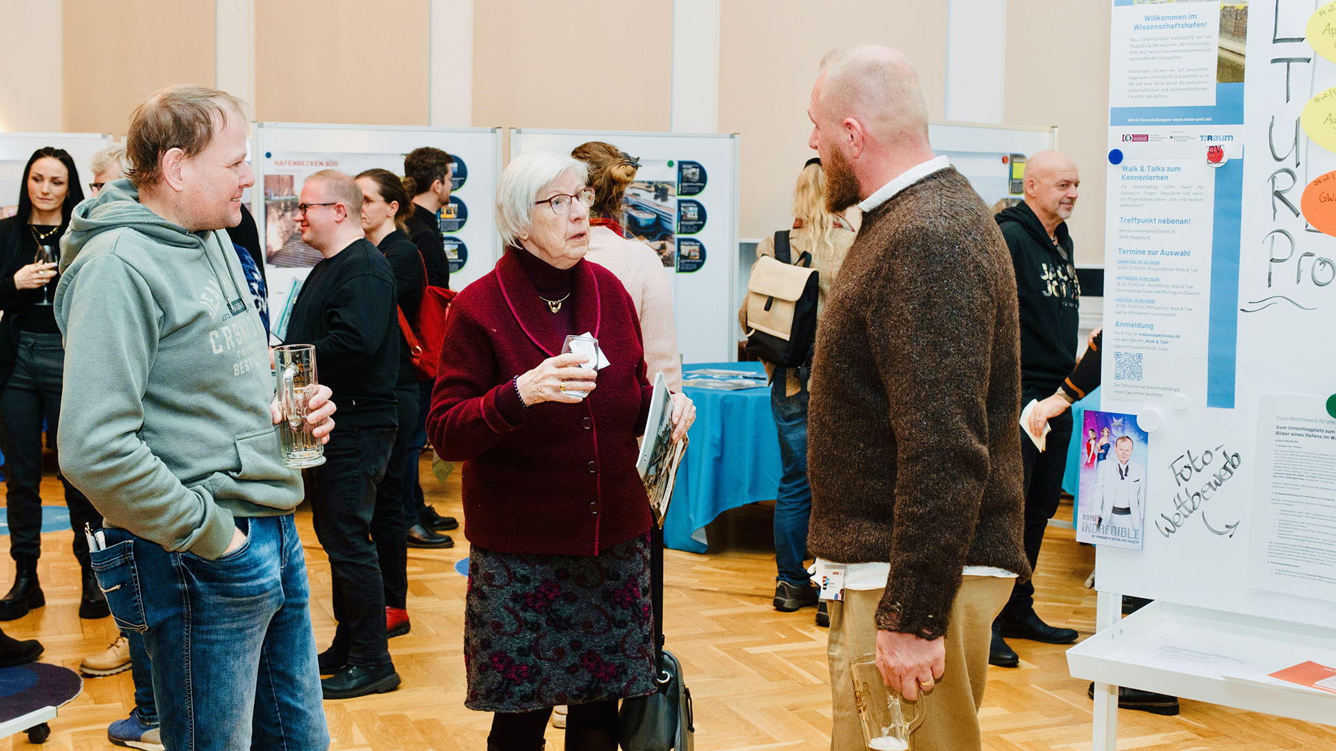Im Zentrum der Veranstaltung stand die Frage, wie sich der Wissenschaftshafen als Ort zwischen historischer Industriearchitektur und innovativer Medizintechnik weiterentwickeln kann. Dabei wurden bewusst zwei Perspektiven miteinander verknüpft: die lokale kulturelle Gestaltungskraft der Stadtgesellschaft und die wachsende touristische sowie strategische Bedeutung des Areals.