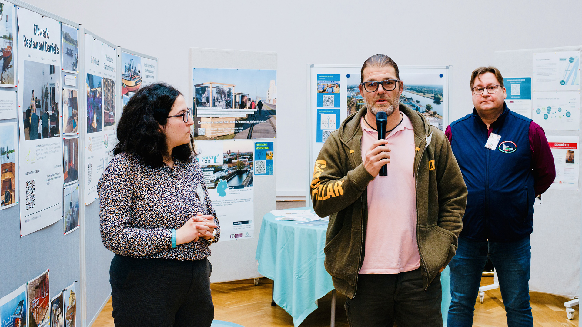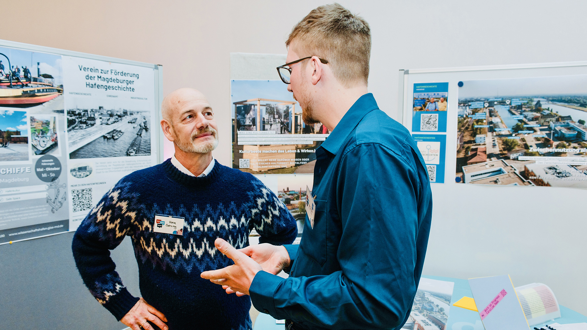 Als Impulsgeber bereicherten Hardy Puls, Geschäftsführer der Magdeburg Marketing Kongress und Tourismus GmbH, sowie der Kulturexperte Prof. Dr. Christian Antz die Diskussion. Beide betonten die Chance, den Wissenschaftshafen als identitätsstiftenden Ort weiterzuentwickeln – als Schnittstelle von Innovation, Kultur, urbaner Lebensqualität und internationaler Ausstrahlung.