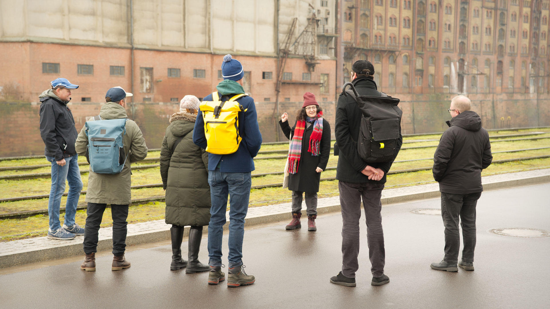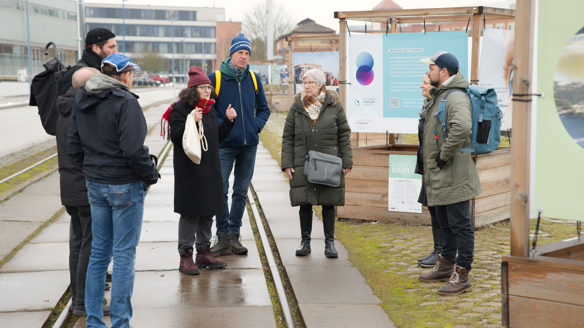 Unsere Walk & Talks führten durch historische Orte des Hafens und machten seinen Wandel zwischen Industriegeschichte, Wissenschaft und Zukunftsvisionen erlebbar. Zwischen alten Speichergebäuden, innovativen Forschungsstandorten und kreativen Zwischennutzungen entstand Raum für Austausch, Perspektiven und Fragen zur weiteren Entwicklung des Quartiers. Gemeinsam haben wir den Wissenschaftshafen als kulturellen, wirtschaftlichen und wissenschaftlichen Möglichkeitsraum erlebt. Die Spaziergänge boten Gelegenheit, miteinander ins Gespräch zu kommen, Ideen zu teilen und Impulse für eine lebendige Mitgestaltung zu sammeln.